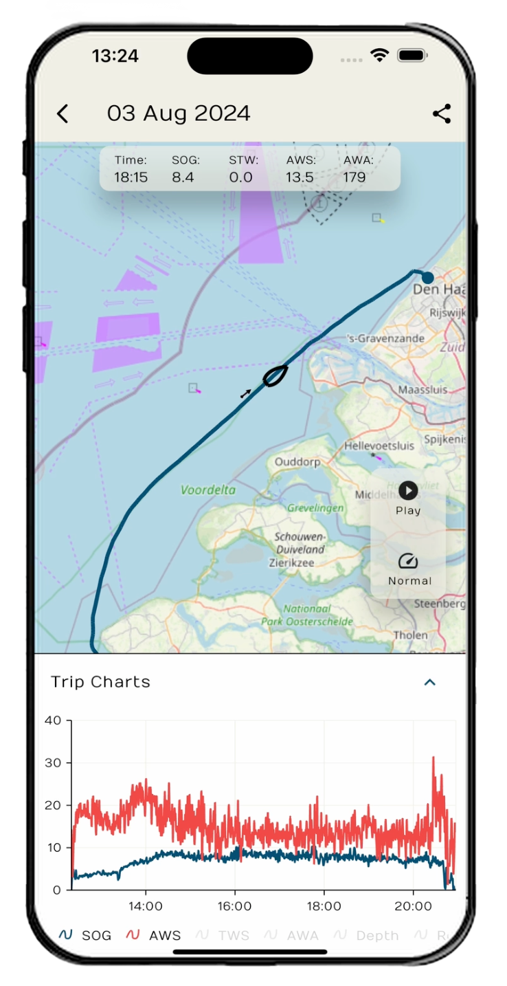 Een app om al je zeilverhalen te bewaren, met echte data van jouw schip. Uitgebreid met foto's en dagboek. Zodat je steeds jouw avonturen kan herbeleven. Keer op keer.